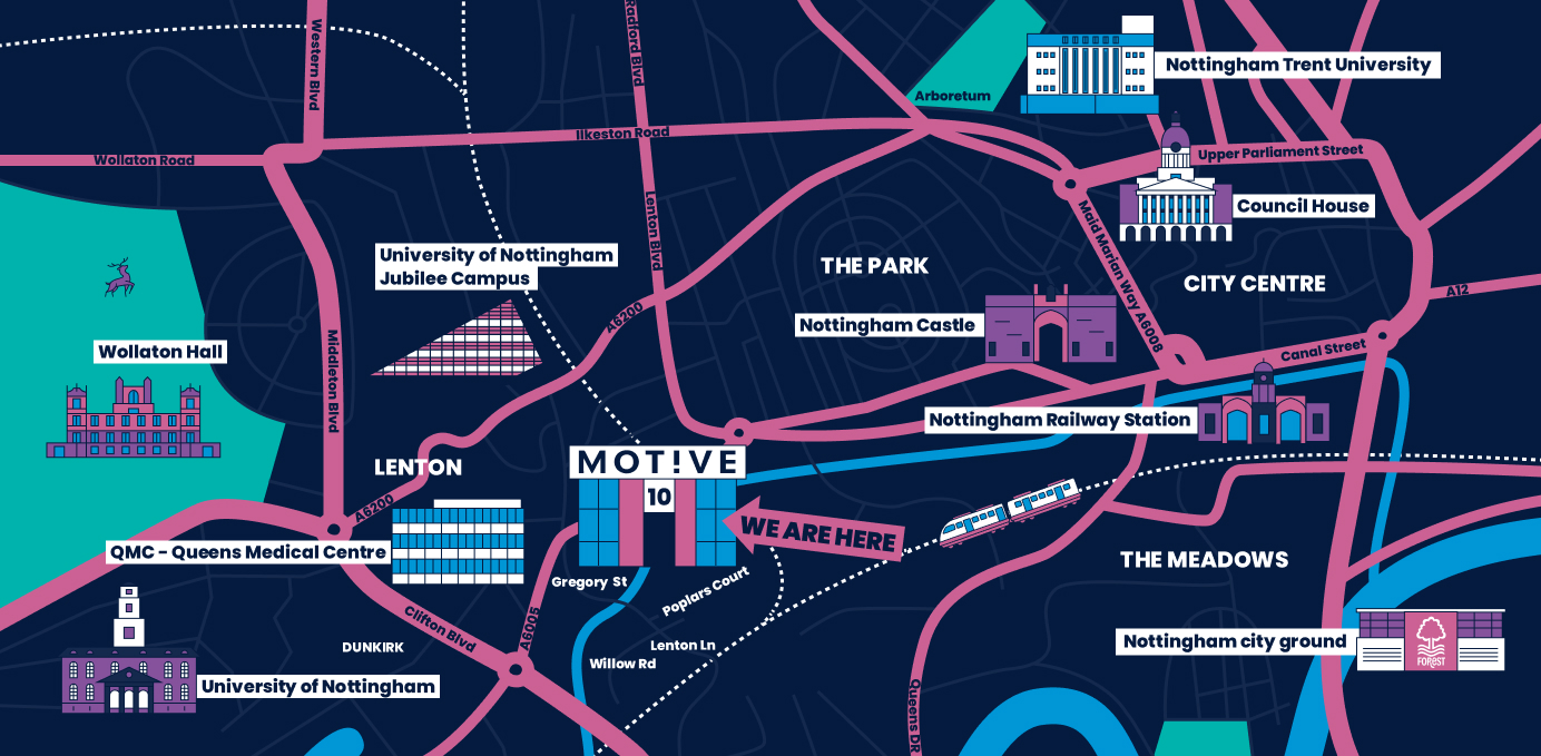 We're based in our own modern office block located a short tram ride from Nottingham city centre.